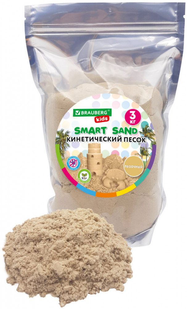 Кинетический песок для лепки Brauberg Kids идеально подойдет для детского творчества. Игры с кинетическим песком развивают мелкую моторику рук, у детей развивается тактильная чувствительность, а также творческие способности и воображение. Безопасный кинетический песок Brauberg Kids по текстуре похож на влажный морской песок, но вместе с этим он абсолютно сухой, приятный на ощупь, воздушный и мягкий, прекрасно сохраняет форму во время лепки.