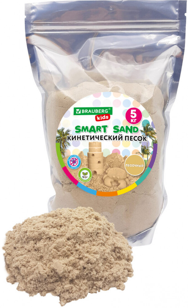 Кинетический песок для лепки Brauberg Kids идеально подойдет для детского творчества. Игры с кинетическим песком развивают мелкую моторику рук, у детей развивается тактильная чувствительность, а также творческие способности и воображение. Безопасный кинетический песок Brauberg Kids по текстуре похож на влажный морской песок, но вместе с этим он абсолютно сухой, приятный на ощупь, воздушный и мягкий, прекрасно сохраняет форму во время лепки.