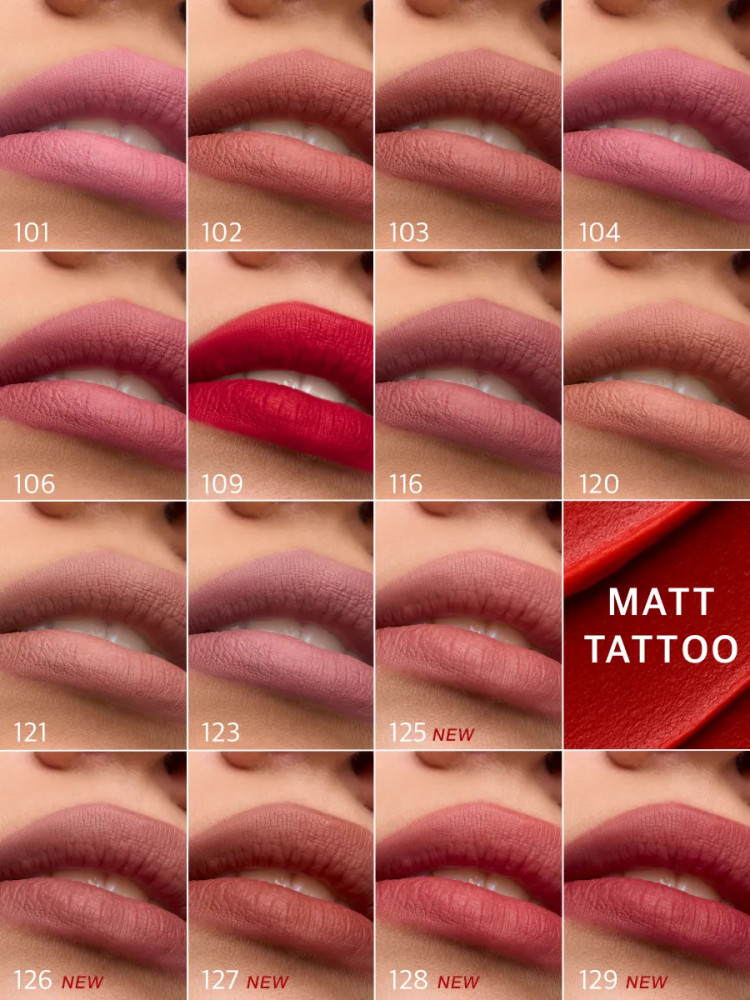 взяла 4 цвета: 103, 104, 106 и 107. помада понравилась, действительно очень стойкая, губы подсушивает как и любая матовая помада. наносится без пятен. если хорошо подготовить губы перед нанесением, то о помада будет лежать ещё лучше. советую наносить тонким слоем, почти сухим аппликатором. цвета очень красивые 107 и 103 брала себе, 106 и 104 свекрови. она вообще все свои остальные матовые помады выбросила. очень ей эта по душе пришлась.