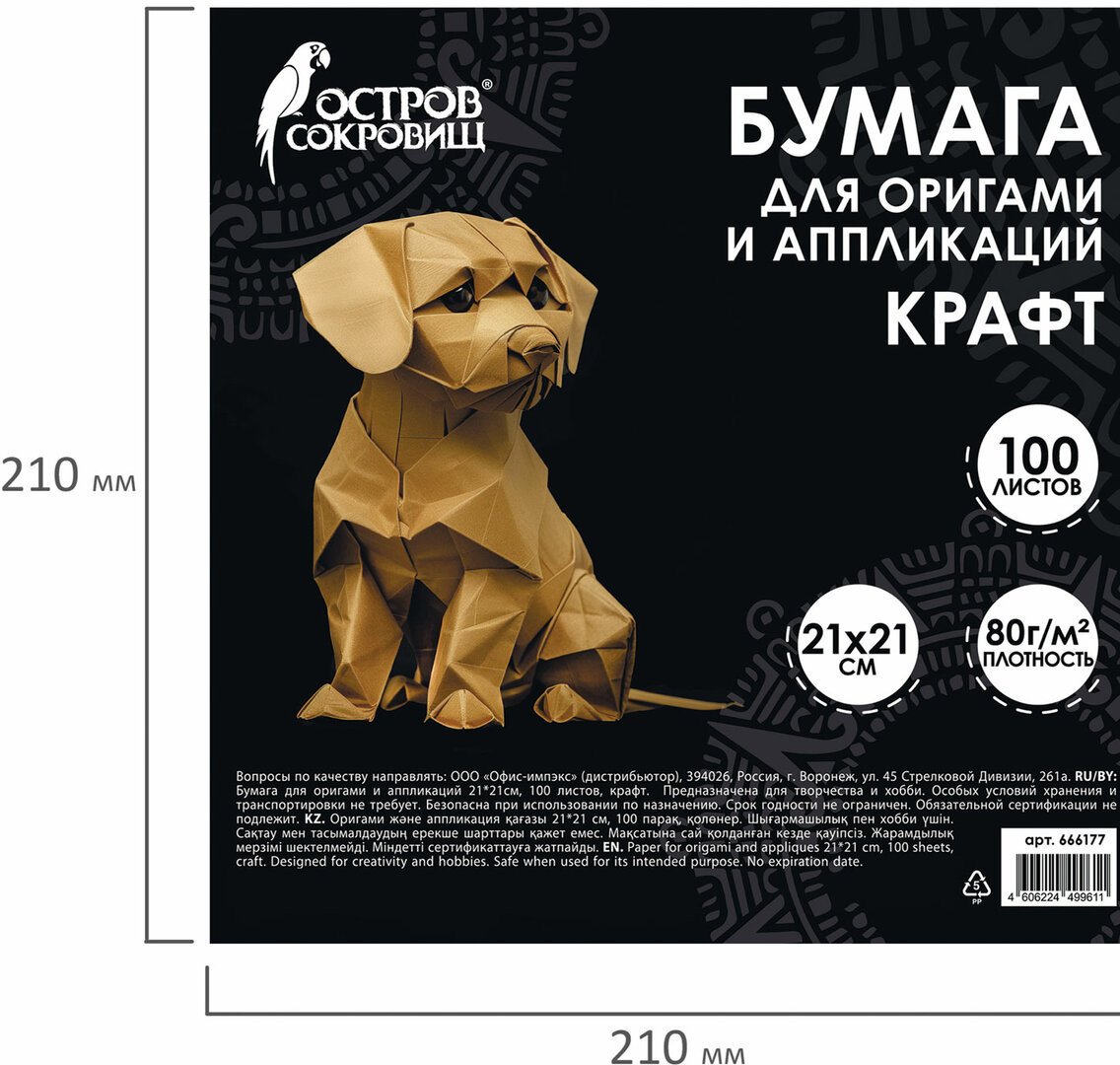💳 Оплатить за товар можно при получении 🇰🇿 Есть бесплатная доставка по Казахстану от 1 дня 🎁 Копите бонусы с каждой покупки Бумага Остров сокровищ предназначена для создания оригинальных поделок в технике оригами. Способствует развитию фантазии, творческих способностей, усидчивости. В набор входят 100 листов крафтовой бумаги для оригами размером 210×210 мм. Бумага обладает всеми необходимыми качествами для оригами: квадратные листы удобны в работе, хорошо держат сгибы, отличаются повышенной гладкостью и прочностью. Герметичная упаковка надежно защищает бумагу и предотвращает замятие листов. |