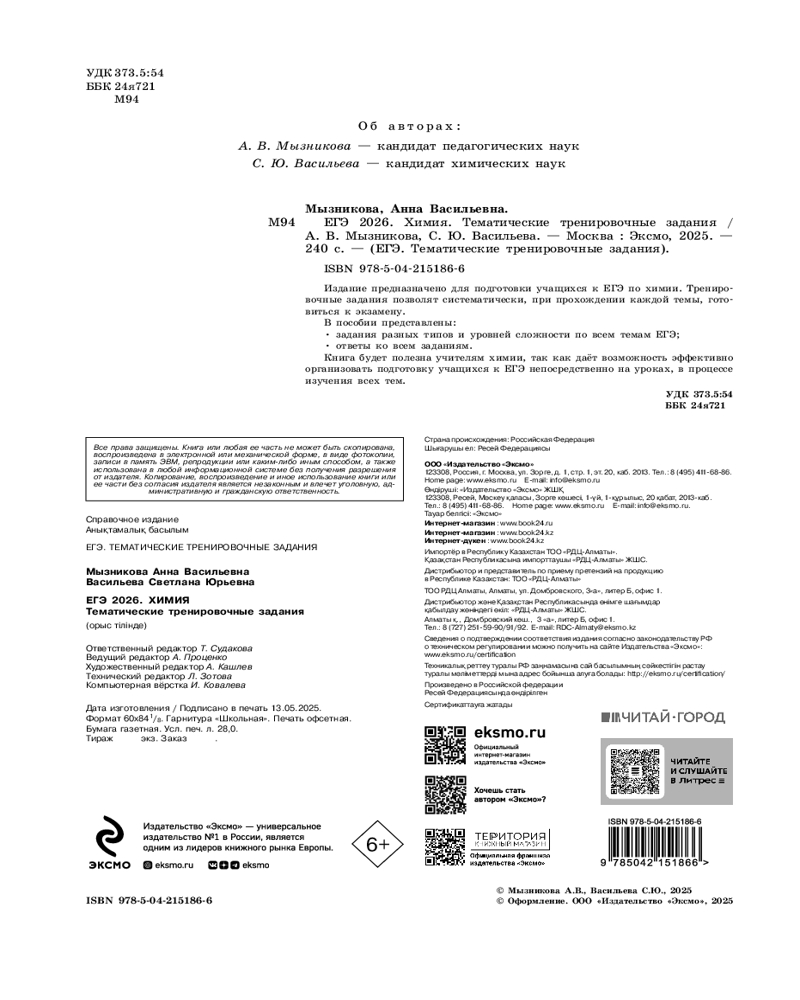 💳 Оплатить за товар можно при получении 🇰🇿 Есть бесплатная доставка по Казахстану от 1 дня 🎁 Копите бонусы с каждой покупки Серия: ЕГЭ. Тематические тренировочные задания (обложка) Пособие адресовано учащимся старших классов, планирующим сдавать ЕГЭ по химии. Тренировочные задания позволят систематически, при прохождении каждой темы, готовиться к экзамену. В пособии представлены задания разных типов и уровней сложности по всем темам ЕГЭ с ответами и решениями. Данная книга для школьников поможет ученикам последовательно отработать каждую тему, устранить пробелы в знаниях, а также систематизировать изучаемый материал. Она будет полезна учителям химии при организации подготовки учащихся к ЕГЭ. Представлены задания, максимально приближенные к реальным, используемым на едином государственном экзамене, и распределенные по темам в порядке их изучения в 10–11 классах старшей школы. |