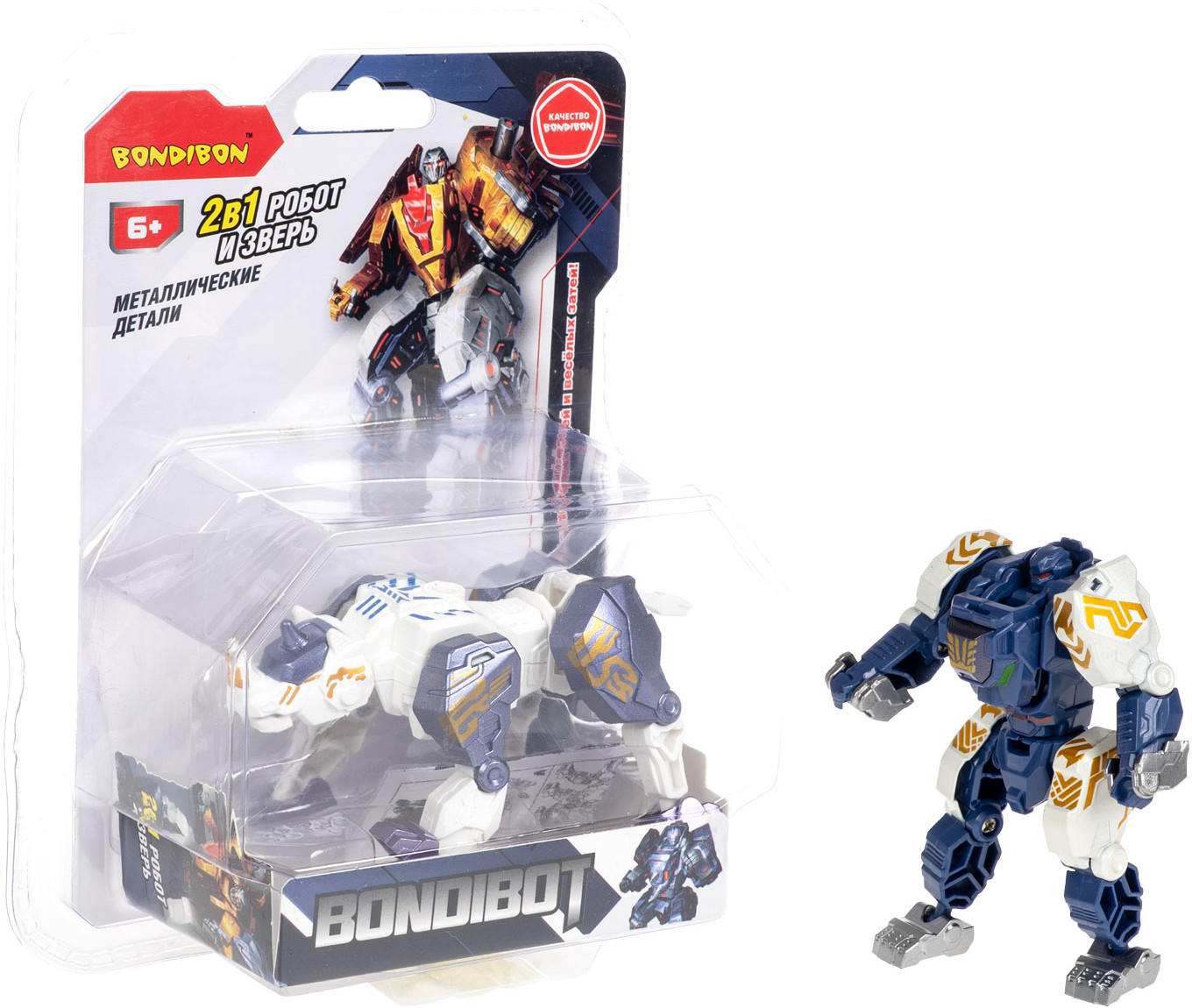 Bondibon Робот-трансформер «Робот-горилла»В данный момент этот товар отсутствует в продаже. Возможно, у нас найдется аналогичный или похожий товар здесь. Серия: Bondibot Познакомься с силой джунглей в новом образе трансформера! Bondibot 2в1 «Робот-горилла» от бренда Bondibon с металлическими деталями — это внушительная фигурка, объединяющая мощь дикого зверя и точность боевого робота. С помощью простых манипуляций игрушка превращается из гориллы в боевого механоида и обратно — идеальна для активной и увлекательной игры. Трансформер 2в1 Робот-горилла развивает координацию движений, пространственное мышление и воображение, а также вдохновляет на создание сюжетов и коллекционирование. Подходит детям от 6 лет. Роботы-трансформеры Bondibot выполнены из безопасных материалов и соответствуют высоким стандартам качества бренда Бондибон. Собери полную серию трансформеров с металлическими деталями и построй огромного звероробота из 4 фигурок Bondibot! |