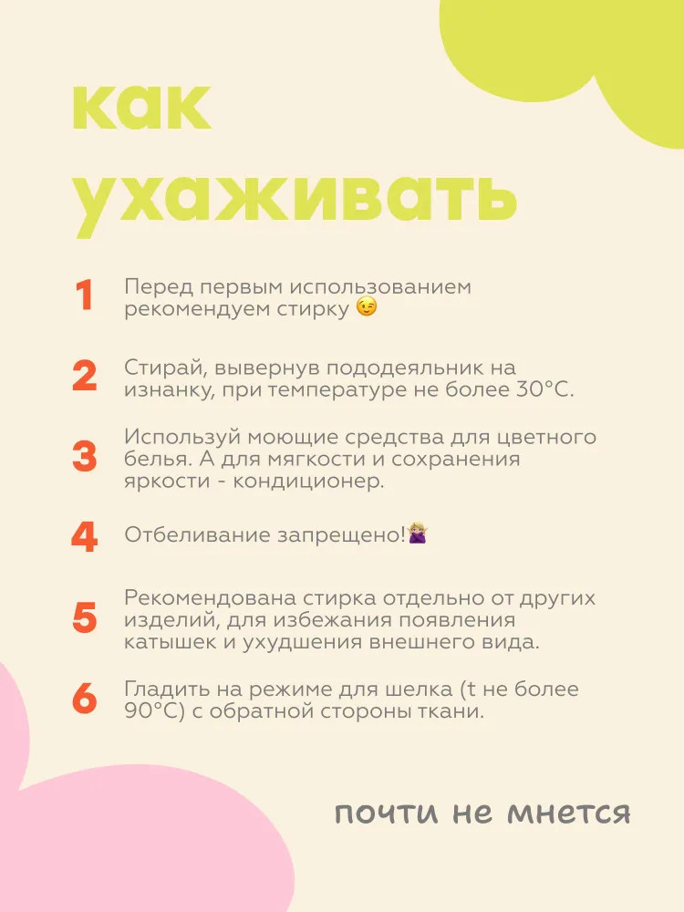 Рекомендации по уходу: текстиль из полисатина стирается в машинке при температуре до 40 градусов. Лучше использовать средства без хлора и не смешивать вещи разных цветов и составов. Перед стиркой постельное белье стоит вывернуть наизнанку. При распаковке вы можете заметить незначительный запах ПВХ, но он уходит после первой же стирки. |