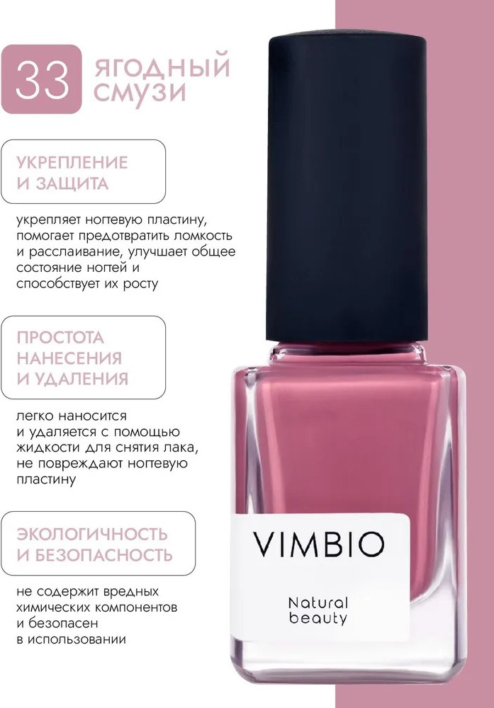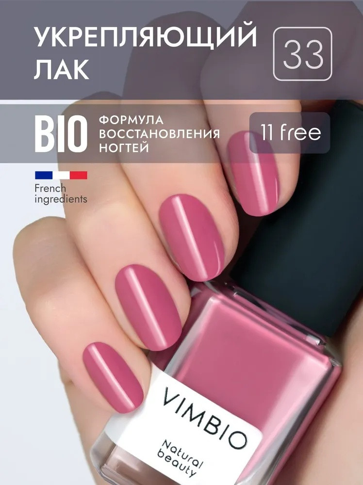 VimBio Лак для ногтей укрепляющий лечебный, оттенок 33 Ягодный смузи
