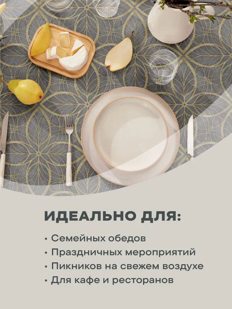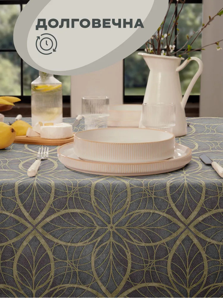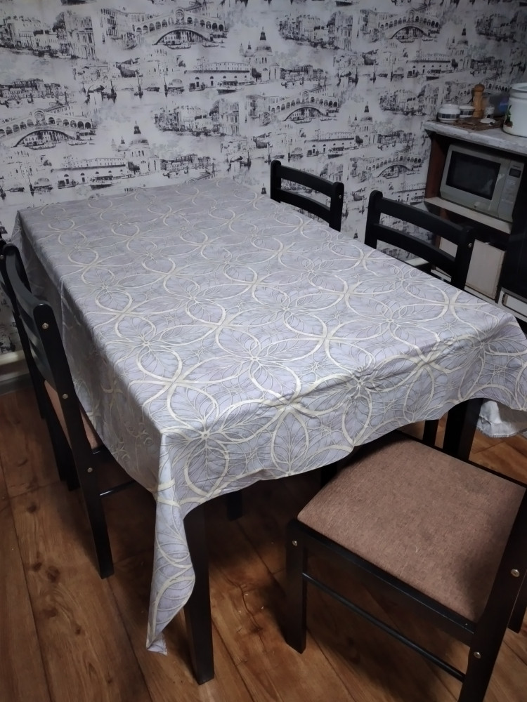 Скатерть отлично вписалась в мою кухню Смотрится стильно. Еще купила такой же расцветки плейсматы. Зашита доя скатерти и смотрится классно. Спасибо всем за качественный товар и за доставку.