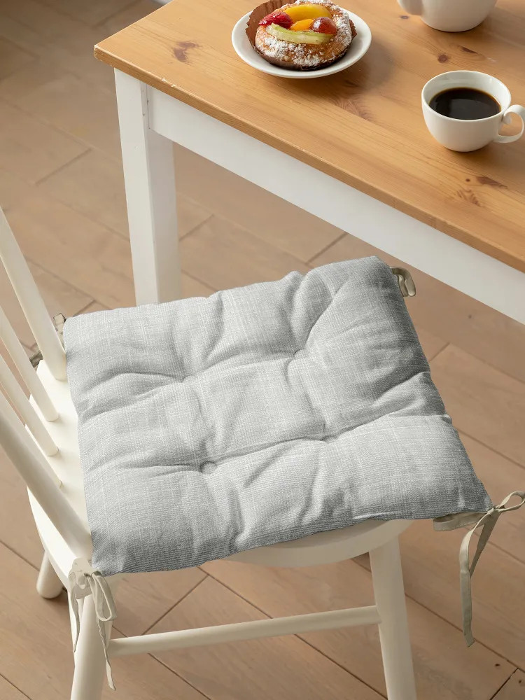 Квадратная подушка на стул (40×40×8 см) идеально дополнит интерьер кухни или гостиной. Завязки по углам будут прочно фиксировать подушку на стульях, обеспечивая вам максимальный комфорт при посадке. Чехол из рогожки (100% хлопок) имитирует лен и отличается стойкостью к износу, а мягкий наполнитель подушечки хорошо сохраняет форму. Эта упругая подушка плотностью 165 г/м2 — настоящая находка для обладателей стульев с твердым сидением. Они позволят сделать ваш отдых гораздо комфортнее.