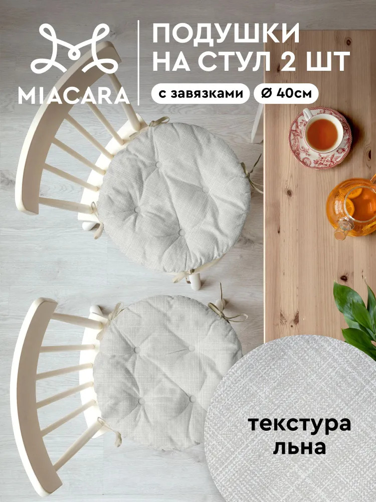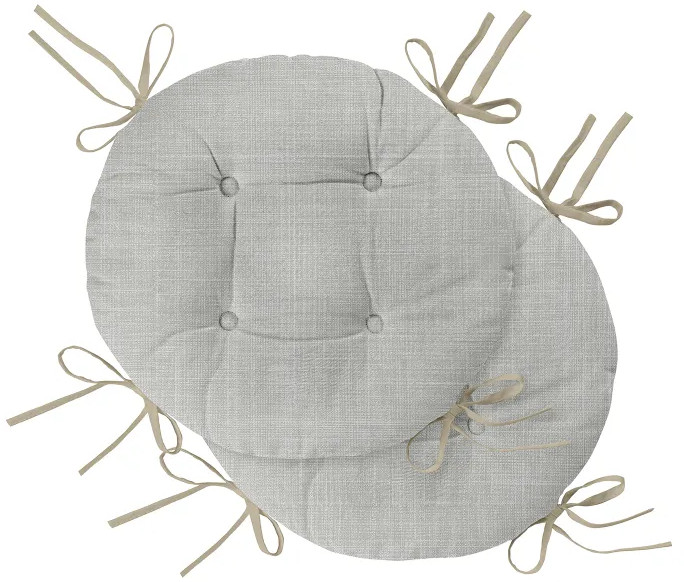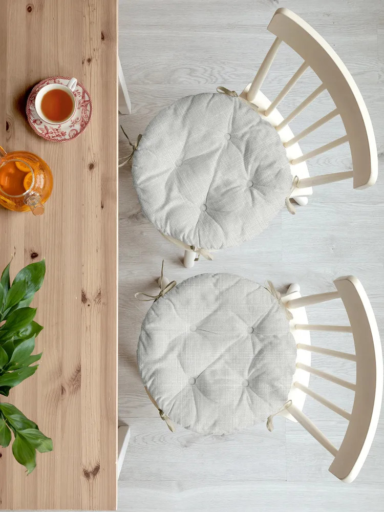Набор круглых подушек на стулья (радиус 40 см, 2 шт) идеально дополнит интерьер кухни или гостиной. Завязки по углам будут прочно фиксировать подушки на стульях, обеспечивая вам максимальный комфорт при посадке. Чехол из рогожки (100% хлопок) имитирует лен и отличается стойкостью к износу, а мягкий и упругий наполнитель подушечек хорошо сохраняет форму. Подушки плотностью 165 г/м2 — настоящая находка для обладателей стульев с твердым сидением. Они позволят сделать ваш отдых гораздо комфортнее.