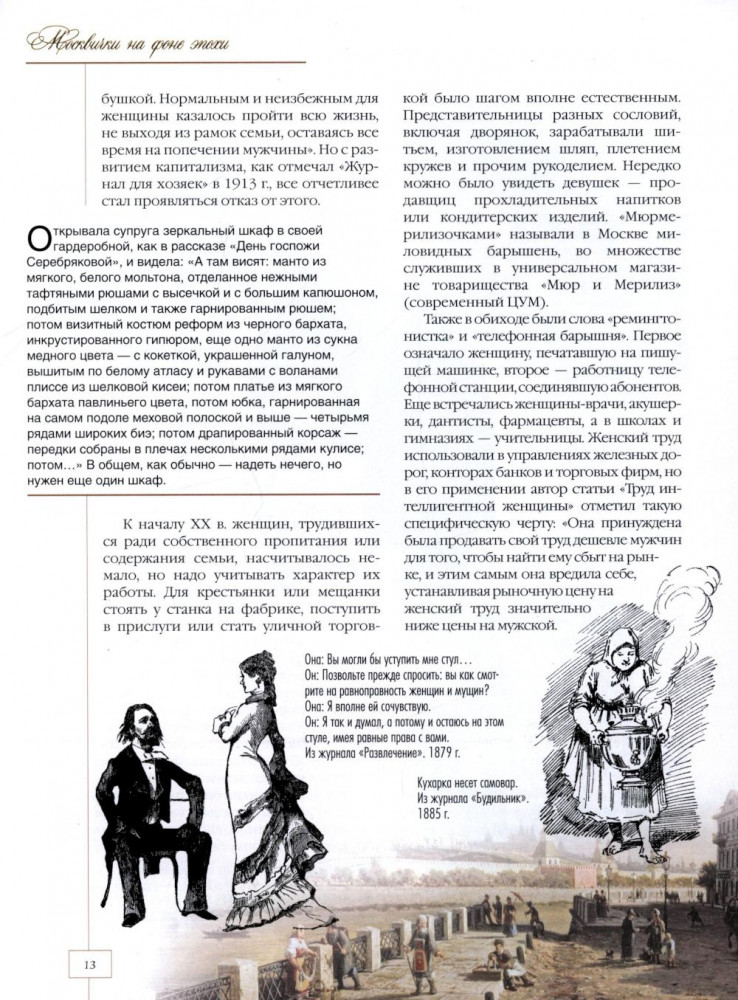 💳 Оплатить за товар можно при получении 🇰🇿 Есть бесплатная доставка по Казахстану от 1 дня 🎁 Копите бонусы с каждой покупки Серия: Москва и москвичи Как и чем жили барышни и дамы Москвы во второй половине XIX -начале XX века? Задолго до появления социальных сетей и онлайн-шопинга, квестов и сайтов знакомств, социальных сетей и прочего? Как выглядел их день, что занимало их мысли и сердца? Дети, кухни, шитье — неужели это все? |