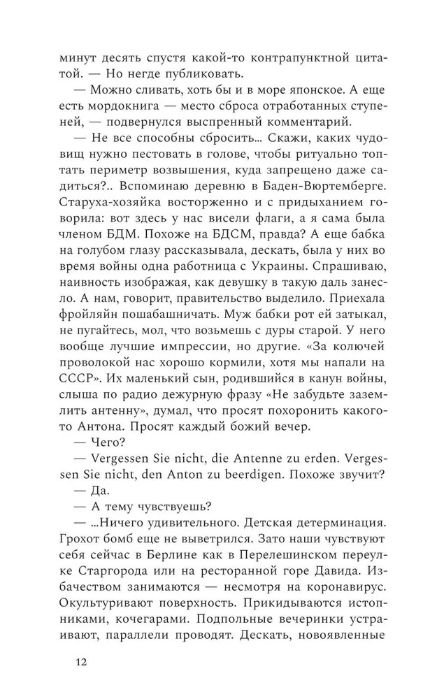 НекоронованныеВ данный момент этот товар отсутствует в продаже. Возможно, у нас найдется аналогичный или похожий товар здесь. «Игорь заметил, что если год странный, то он таков во всех отношениях: расставания с близкими, конфронтация со „звездами на районе“, ненужные встречи и невстречи с теми, кто необходим. Сложные события плотно соседствуют друг с другом, облепляя дуодециму месяцев, загромождая пространство». Главный герой романа Дмитрия Драгилёва, газетчик и русский берлинец, одержим таинственными календарями, сменяющими друг друга, — именно им он приписывает жесткие противоречия времени. На протяжении повествования герой постоянно оказывается втянут в споры с друзьями: их образы складываются в яркую галерею, где соседствуют с портретами исторических персонажей. Самого рассказчика терзают философские вопросы, неразделенные чувства и сложные отношения с прошлым и настоящим, а также со старым и новым социумом, состоящим из разных волн русской эмиграции. Его ироничный, но чувственный язык, насыщенный метафорами, деталями и поэтическими фигурами, стремится передать одновременно абсурдность и трагизм опыта людей, заброшенных историей в чужое пространство. |