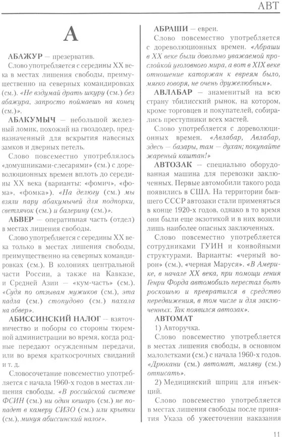 Настоящее издание содержит более шести тысяч слов и понятий, которые существовали ранее и существуют в преступном мире сегодня. Словарь знакомит читателя с происхождением арготических слов и выражений. Воровские «масти» в криминальной палитре России настолько многообразны что, ни в одном справочнике по криминологии полного описания этих специализаций и, соответственно, языка их общения просто нет. К тому же, как утверждают специалисты, такого многообразия не наблюдается ни в одной стране мира. Начиная еще с XIX века исследователи пытались составить такой список, описать специфику понятий и значения «блатного слова».