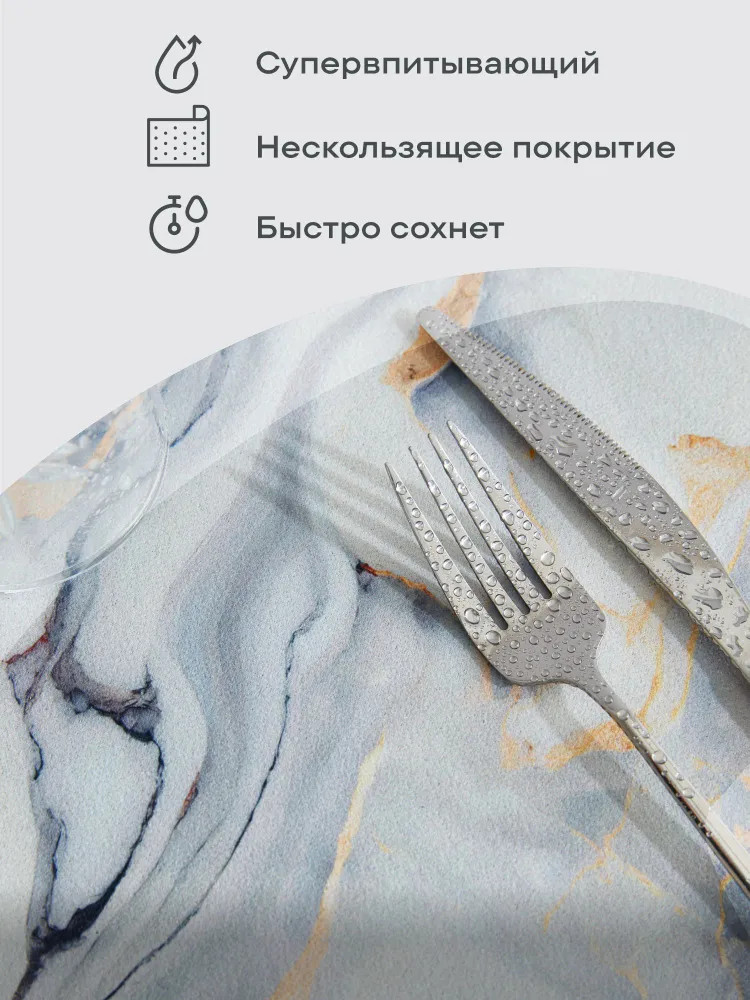 Я в восторге от этого коврика. Взяла их два. Самое главное он темный, на светлых видны брызги жира и т.д. Впитывает влагу моментально, мне это понравилось. Есть с чем сравнивать.