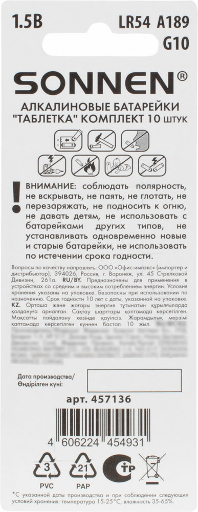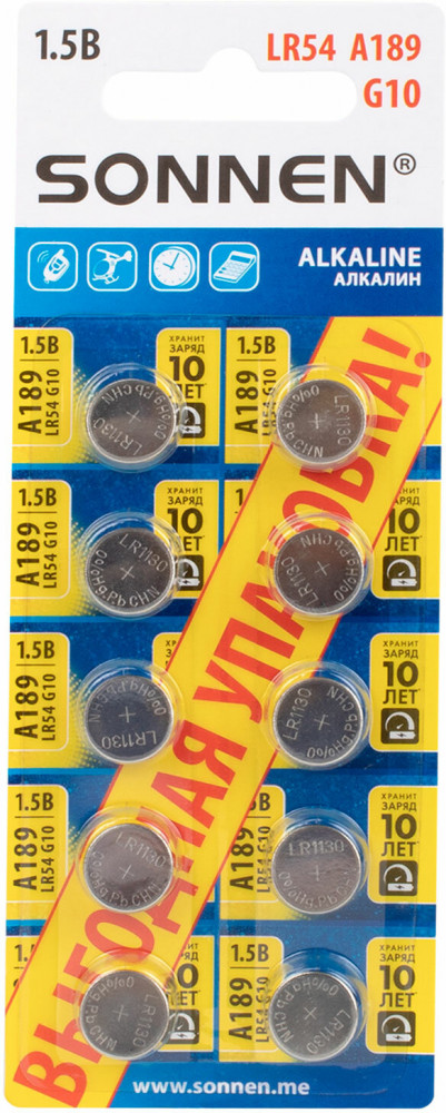 Sonnen Набор батареек алкалиновых 189A (G10, LR54)-20% +5