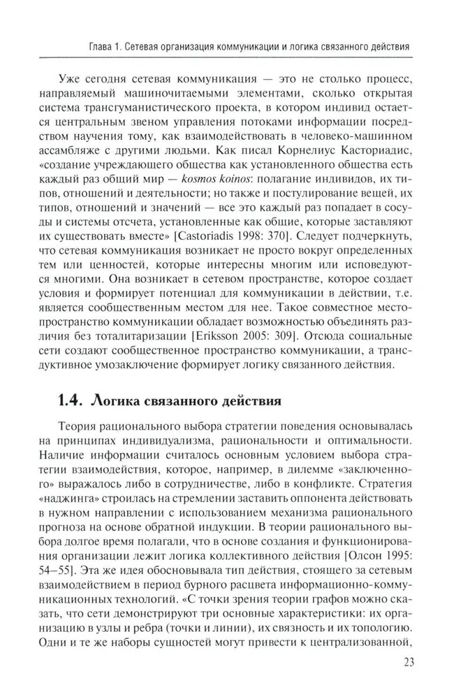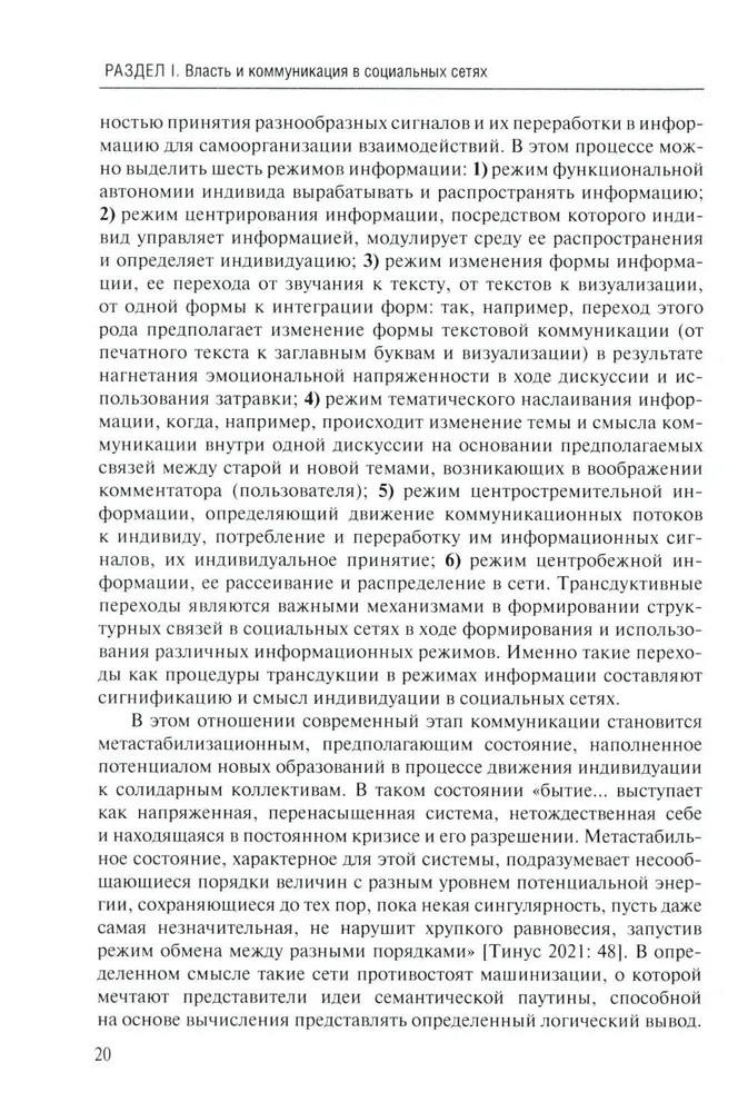 В данный момент этот товар отсутствует в продаже. Возможно, у нас найдется аналогичный или похожий товар здесь. Монография содержит результаты изучения социальных сообществ в сети «ВКонтакте». Центральной идеей монографии выступает представление о социальных сетях, создающих информационные режимы индивидуации и солидаризации на основе логики связанного действия. Методологией исследования выступает сетевой подход, направленный на поиск дизайна связи легитимности сетевой власти, убеждающей коммуникации и стратегии поведения пользователей сетей.