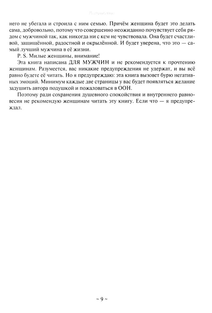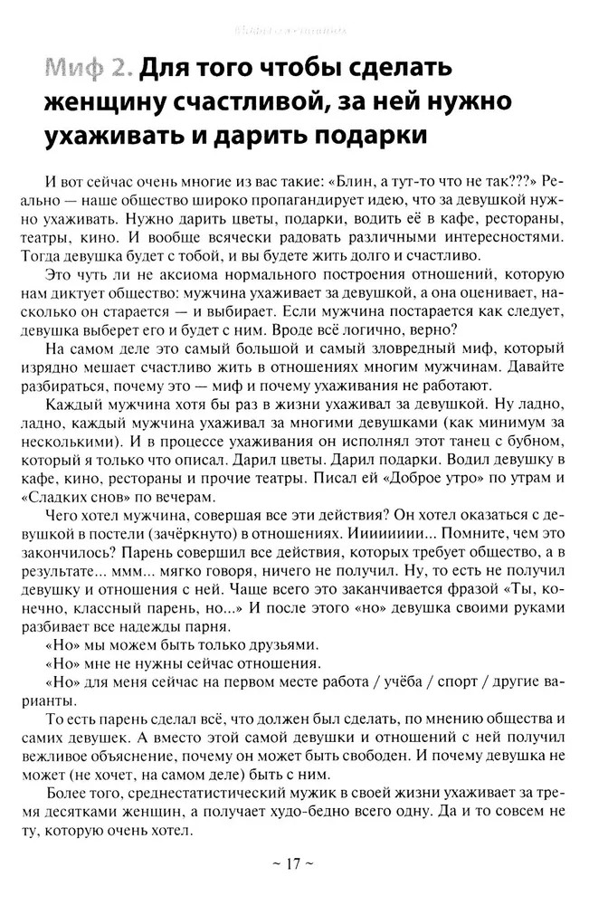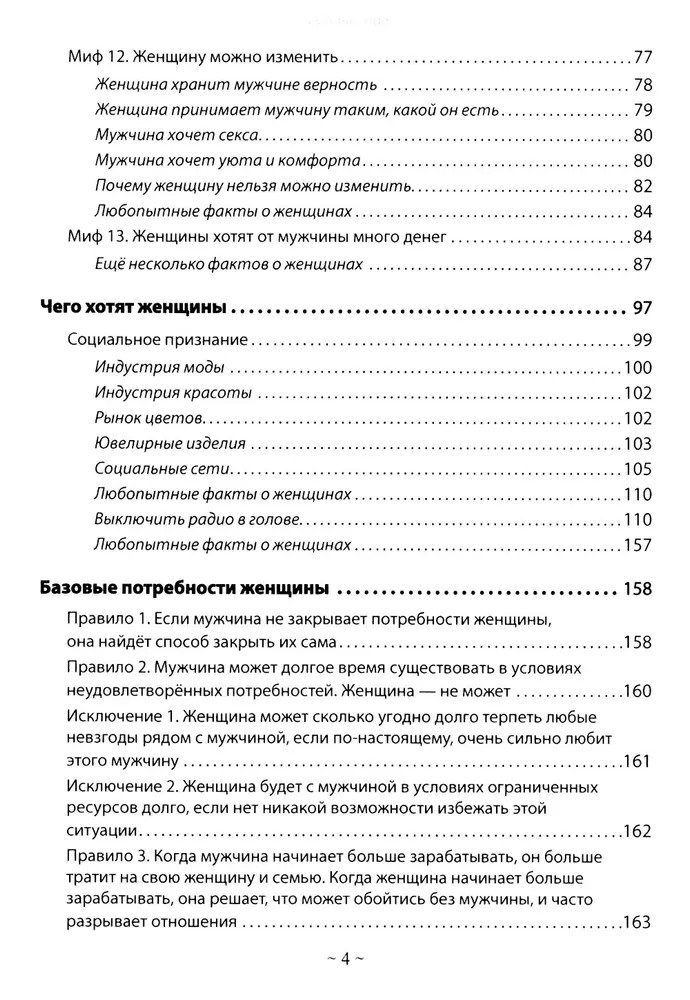 💳 Оплатить за товар можно при получении 🇰🇿 Есть бесплатная доставка по Казахстану от 1 дня 🎁 Копите бонусы с каждой покупки Почему у мужчин не складываются отношения с женщинами? Почему даже если мужчина вкладывается в женщину, старается для неё, дарит цветы, подарки и отдаёт ей всю зарплату, счастливых отношений у него не будет? Почему в мире практически не осталось пар, которые живут счастливо: без ссор, конфликтов, скандалов, споров и измен? Чего на самом деле хотя женщины? В книге даны ответы на самый главный вопрос: в чём секрет счастливых отношений? Что мужчина должен дать женщине, чтобы у него с ней получились отношения, в которых он будет счастлив? На самом деле, всё просто: нужно закрывать все Базовые потребности женщины, и тогда женщина будет счастлива. Она не будет выносить мозг, бежать с подружками в караоке или общаться с другими мужчинами. Автор очень подробно разбирает Базовые потребности женщины и даёт рекомендации, которые сработают. |
