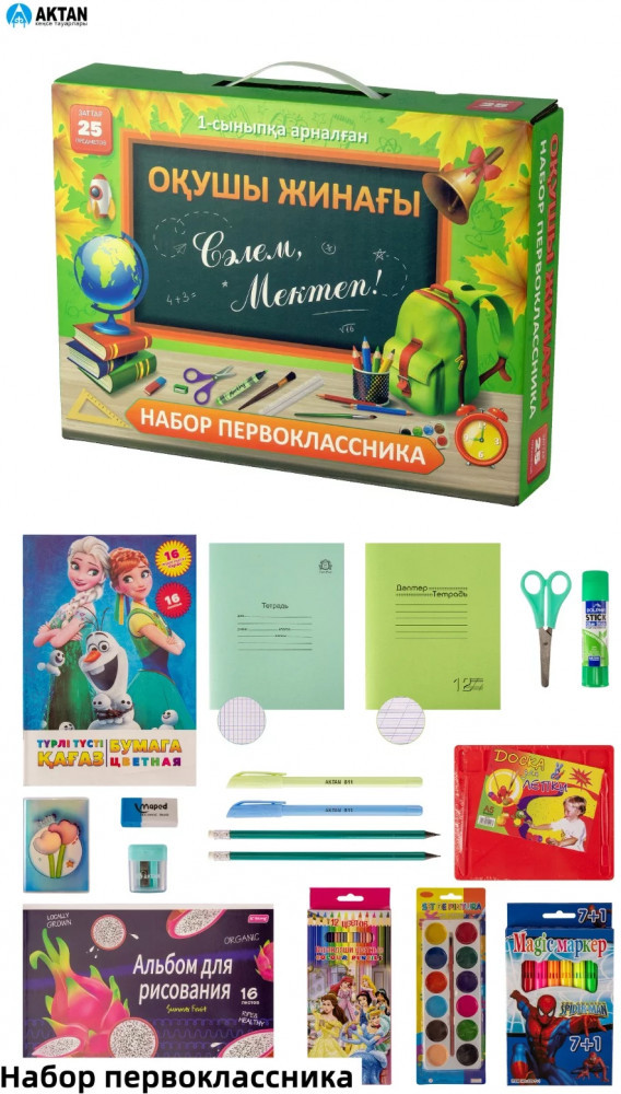 Набор канцелярский для первоклассника «Сәлем, Мектеп!»В данный момент этот товар отсутствует в продаже. Возможно, у нас найдется аналогичный или похожий товар здесь. Набор первоклассника «Сәлем, Мектеп!» — всё сразу в одной коробке. Готовите ребёнка к школе? Не тратьте время на поиски канцелярии по отдельности — этот набор включает всё, что нужно первокласснику на старт учебного года. Упаковано в яркую коробку с ручкой — удобно брать с собой и дарить. Подходит и для мальчиков, и для девочек. |