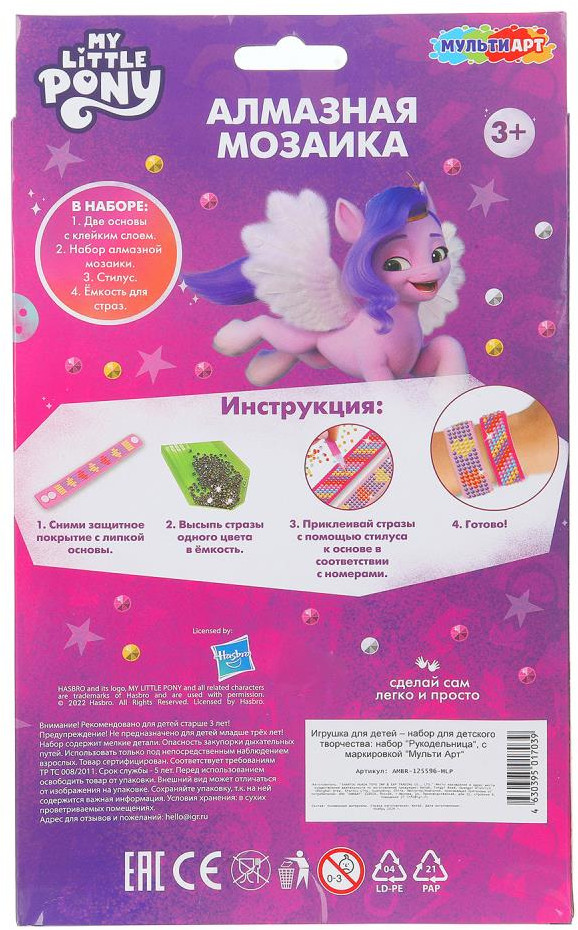 Multi Art Набор для творчества «Мой маленький пони»В данный момент этот товар отсутствует в продаже. Возможно, у нас найдется аналогичный или похожий товар здесь. Серия: My Little Pony Набор для детского творчества — браслеты, украшенные алмазной мозаикой «Мой маленький пони» ТМ «Мульти Арт» — отличный подарок для ребёнка, который будет способствовать развитию его творческих способностей. При помощи этого набора юная умелица сможет создать два стильных украшения на руку, декорированных сверкающими стразами. Красивые блестящие браслеты помогут разнообразить ежедневный образ девочки или станут отличным подарком, сделанным собственными руками, для её подруг. Творческие занятия с алмазной мозаикой ТМ «Мульти Арт» обладают успокаивающим действием, а также развивают: творческое мышление, цветовое восприятие, усидчивость, внимание и аккуратность. |