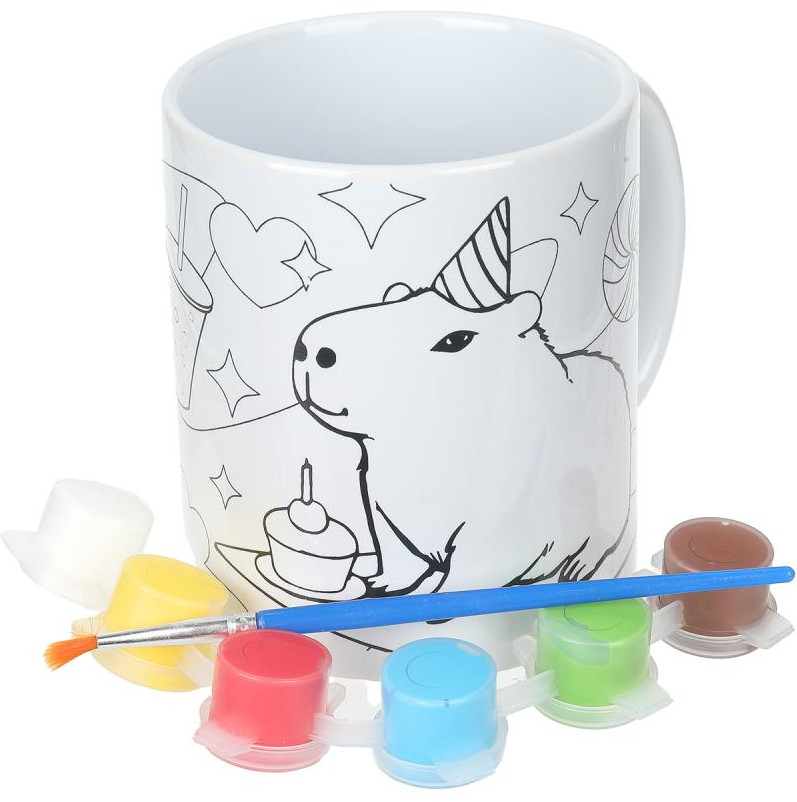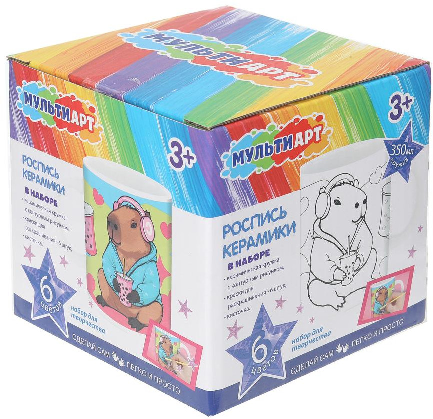Multi Art Кружка для росписи «Капибара»В данный момент этот товар отсутствует в продаже. Возможно, у нас найдется аналогичный или похожий товар здесь. Набор для творчества — кружка для росписи «Капибара» ТМ «Мульти Арт» непременно понравится маленьким художникам. С этим набором ребёнок сможет самостоятельно или с помощью родителей расписать кружку с изображением забавной капибары. Для создания рисунка необходимо раскрасить изображение по контуру, разогреть духовку до 150-200 градусов, поместить кружку внутрь на 15 минут, вынуть и дать остыть. Готовое изделие можно использовать в качестве сувенира или подарить родным и близким. Игра с набором для творчества ТМ «Мульти Арт» развивает: творческое мышление, моторику, координацию движений, воображение, цветовосприятие, внимание и усидчивость. |