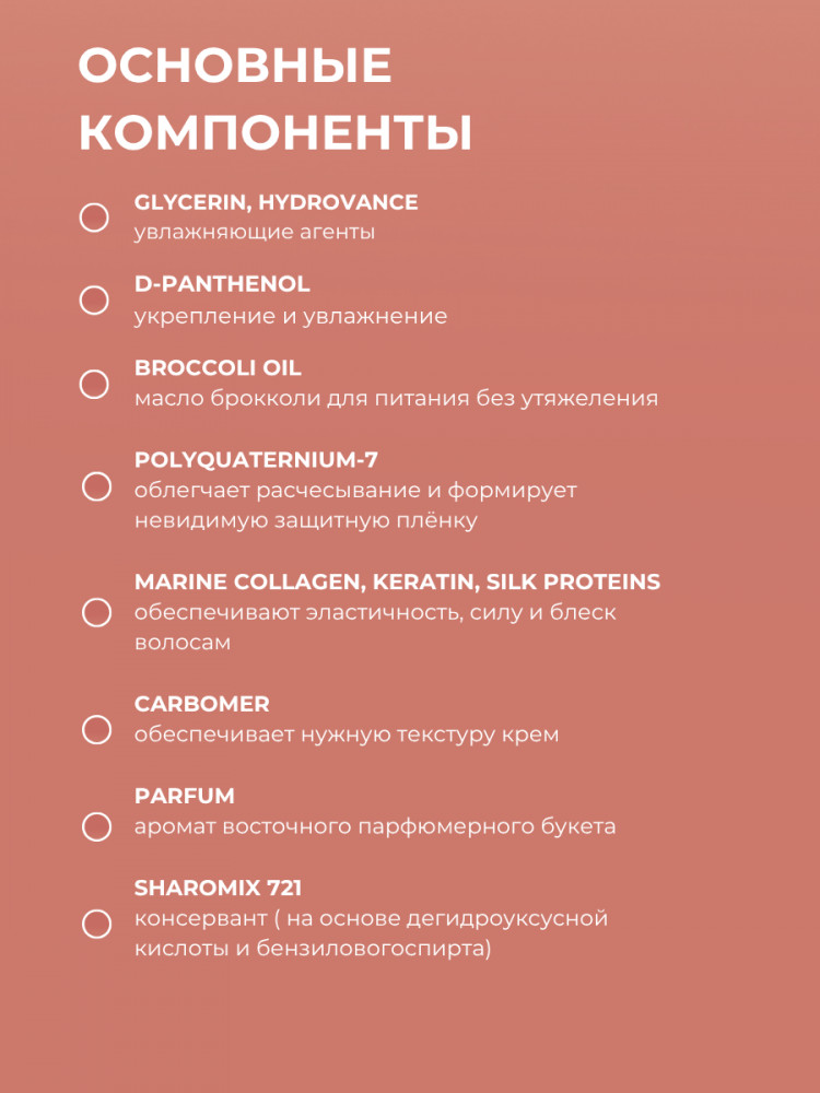 Первый раз в жизни я нашла крем для волос, который выполняет все функции! Мои волосы очень капризные, и длинные, я перепробовала все доступные средства ухода, пользуюсь только профессиональной косметикой, но ни один не помог добиться мне результата ухоженных, рассыпчатых сияющих волос. На данный крем я много не рассчитывала, взяла, так как не было выбора. И я осталась очень довольна-волосы рассыпчатые, не путаются, не пушатся, запах просто 💣. Цена просто сказка! Закажу еще несколько ароматов.