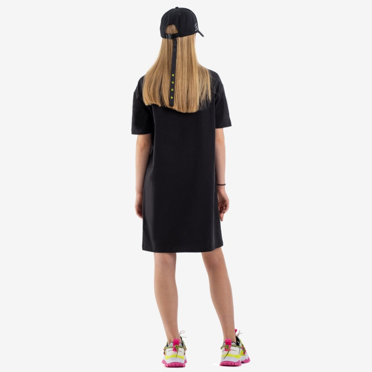 Летнее трикотажное платье выполнено из мягкого тянущегося хлопка и обеспечивает комфорт ребенка в течение всего дня. А-силуэт - не сковывает движения неоновый цвет придают платью современный вид а принт с нашивным декором делает его по-настоящему уникальным контрастная мягкая бейка по горловине и пройме смотрится оригинально.