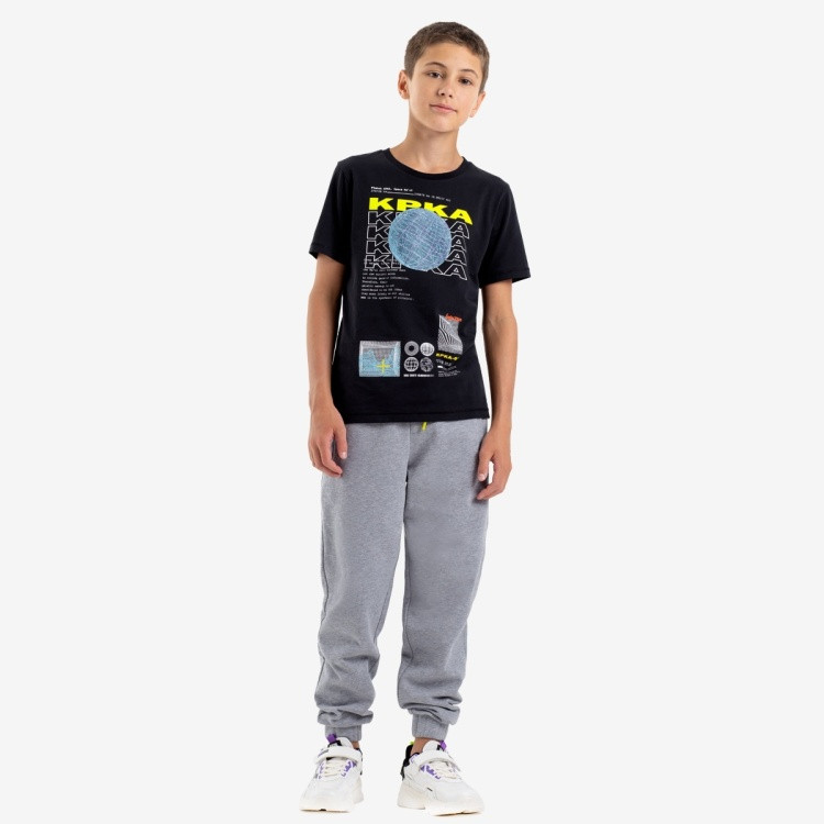 Спортивные брюки-джоггеры для мальчика-подростка выполнены из футера с начесом. Талия брюк на резинке имеет удобный шнурок для регулировки объема. Модель имеет глубокие боковые карманы. Низ брюк выполнен на мягкой резинке.