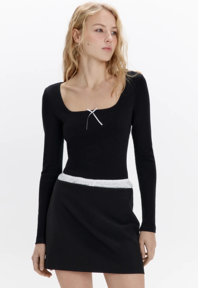 Женское боди-лонгслив облегающего кроя из мягкой, эластичной хлопковой ткани с гладкой трикотажной фактурой. Глубокий вырез-каре с декоративным бантиком на груди. Длинные облегающие рукава с прямыми манжетами и прямой линией плеча. Удобные широкие трусики-слипы с застежкой на кнопки снизу. Облегающий лонгслив-боди с длинными рукавами отлично подойдет для удобных и привлекательных аутфитов на учебу, в офис и просто на каждый день. Однотонные расцветки в базовых оттенках подойдут для любого стиля и настроения, а кокетливый бантик добавит образам нотку романтичности. Создавай с боди повседневные луки, сочетая с расслабленным или более строгим низом, а также носи отдельно или в составе многослойных луков.