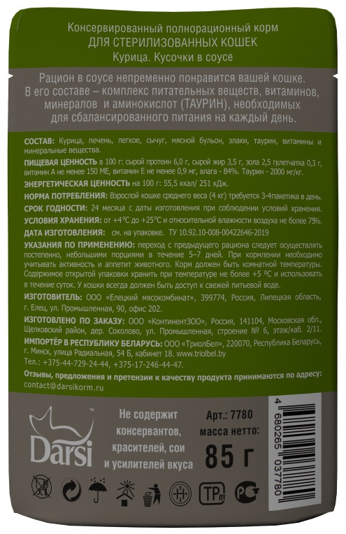 Darsi Набор паучей для кошек «Кусочки в соусе с курицей»
