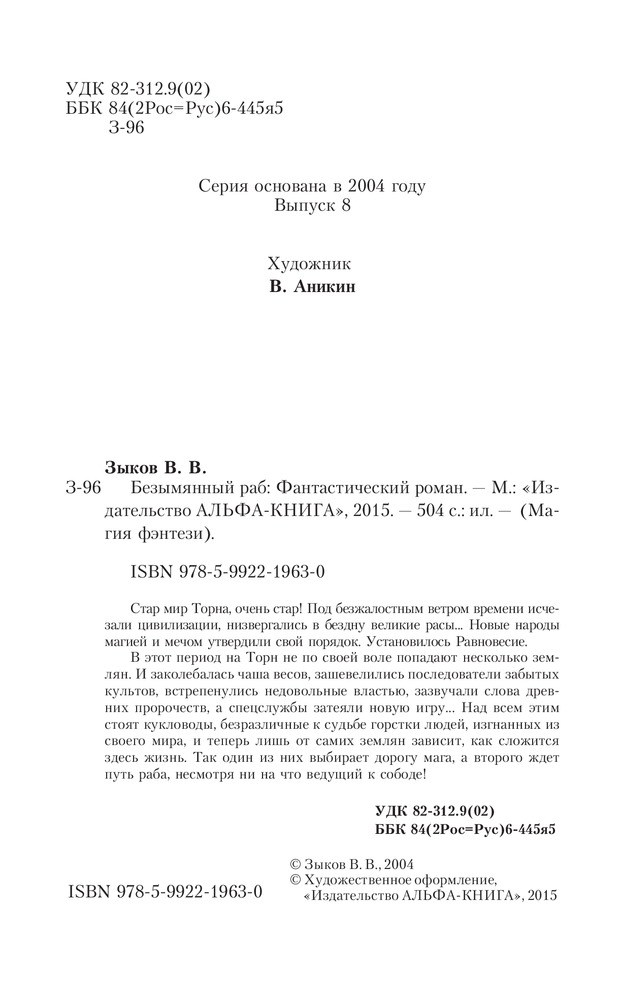 В этот период на Торн не по своей воле попадают несколько землян. И заколебалась чаша весов, зашевелились последователи забытых культов, встрепенулись недовольные властью, зазвучали слова древних пророчеств, а спецслужбы затеяли новую игру… Над всем этим стоят кукловоды, безразличные к судьбе горстки людей, изгнанных из своего мира, и теперь лишь от самих землян зависит, как сложится здесь жизнь. Так один из них выбирает дорогу мага, а второго ждет путь раба, несмотря ни на что ведущий к свободе!