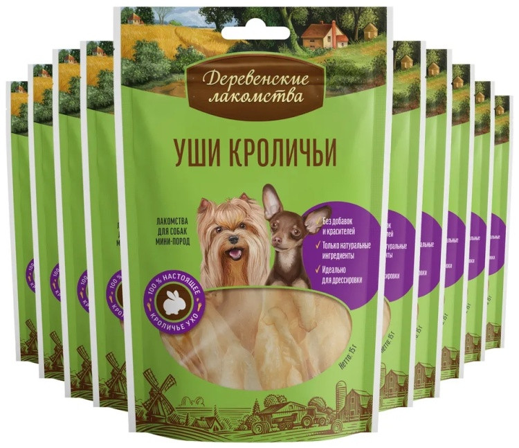 Деревенские лакомства Набор лакомств для собак «Уши кроличьи»