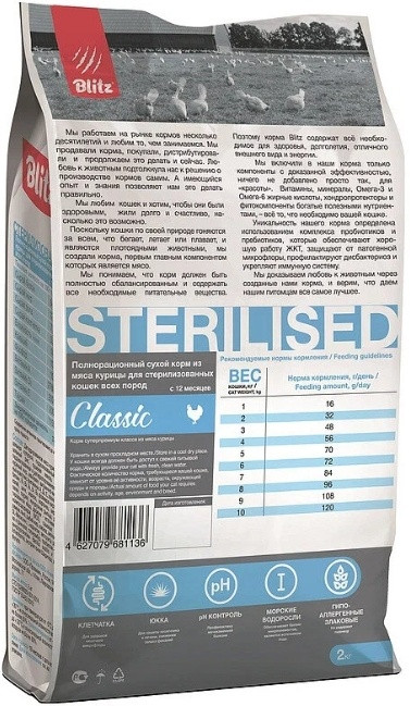 Blitz Корм для стерилизованных кошек «Classic Sterilised Курица»
