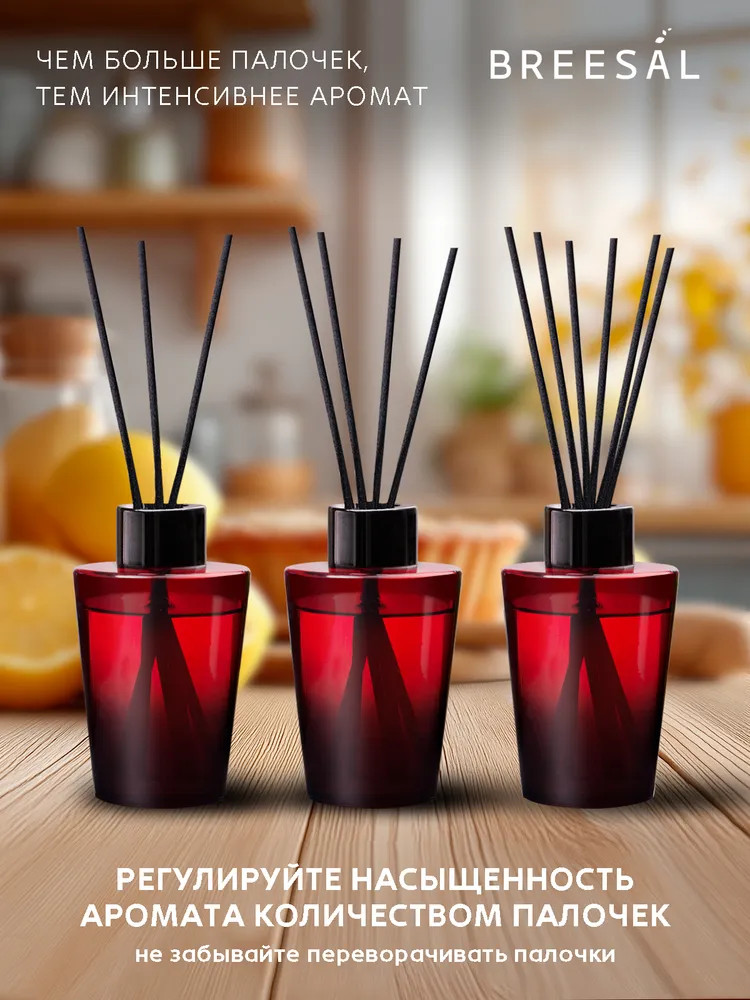 • поставьте палочки внутрь флакона. Когда палочки пропитаются, аромат распространится по всему помещению. Чем больше палочек во флаконе, тем интенсивнее аромат;
