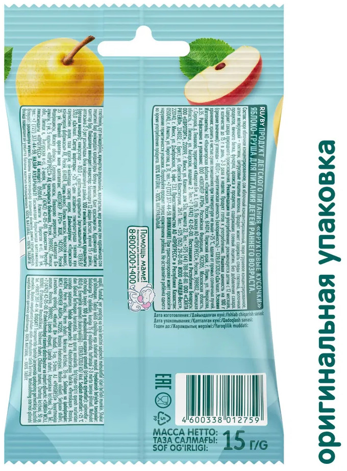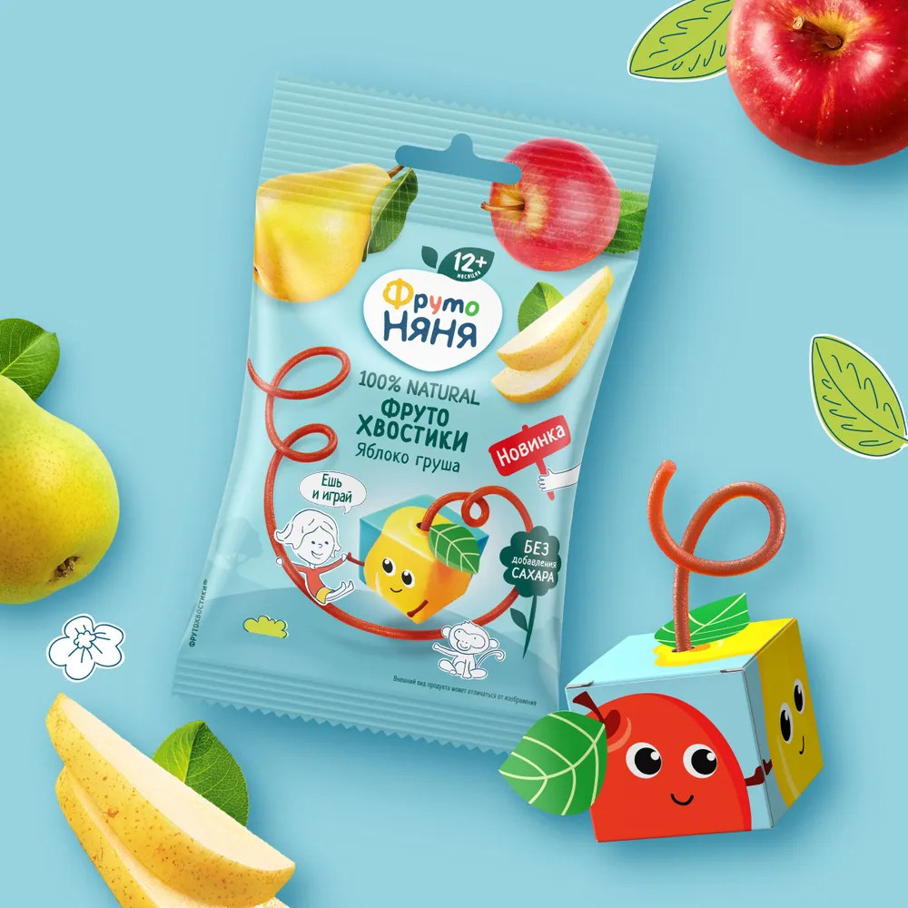 ФрутоНяня Кусочки фруктовые с яблоком и грушей «ФрутоХвостики»