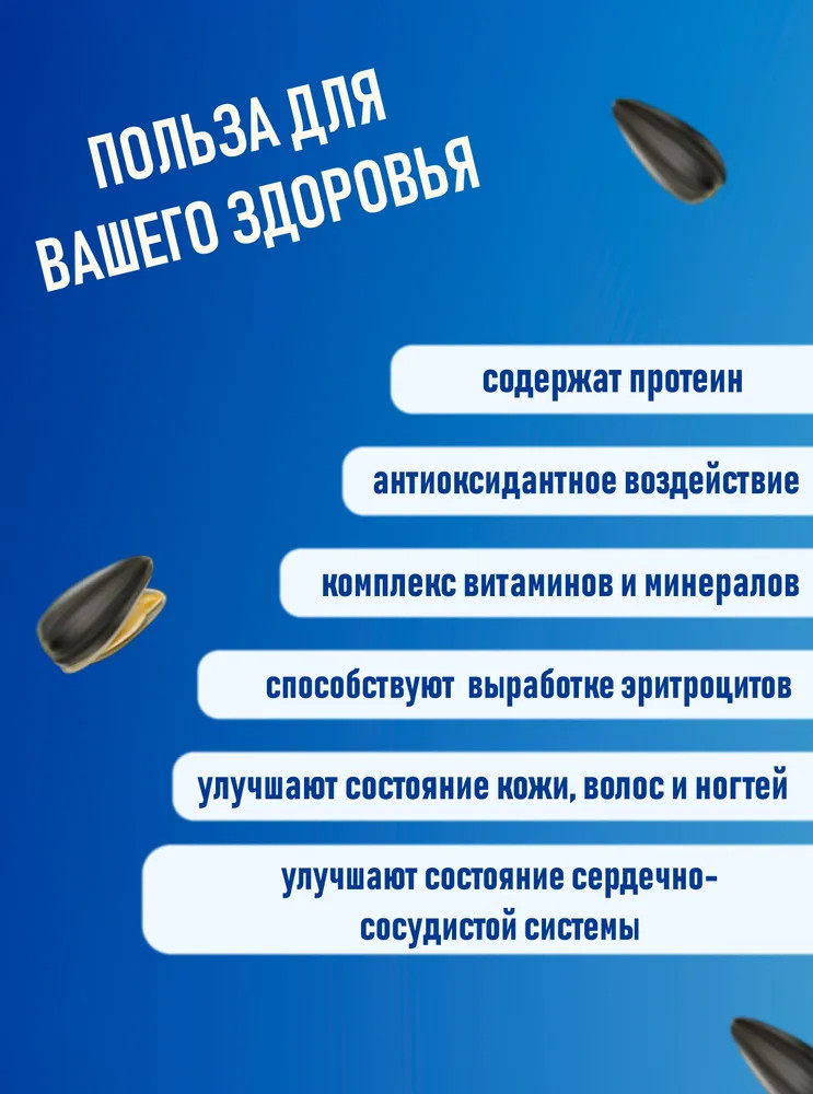 В семенах подсолнечника содержаться все необходимые для здоровья и красоты микроэлементы, витамины и аминокислоты. Железо, медь — влияют на процесс кроветворения и уровня гемоглобина. Селен повышает сопротивляемость организма к негативным окружающим факторам, вирусам, бактериям, предупреждает развитие онкологических и сердечно-сосудистых заболеваний, а в сочетании с йодом он отвечает за нормальное функционирование щитовидной железы. Кроме всего перечисленного в семечках нет холестерина.