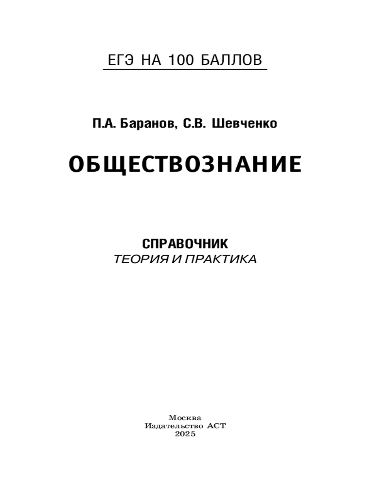 ЕГЭ. Обществознание. ЕГЭ на 100 баллов. Справочник. Теория и практикаСергей Владимирович Шевченко, Петр Анатольевич Баранов +95