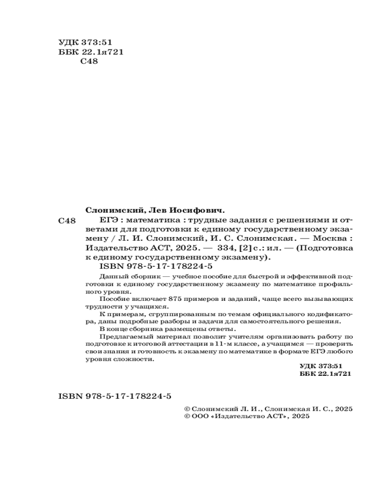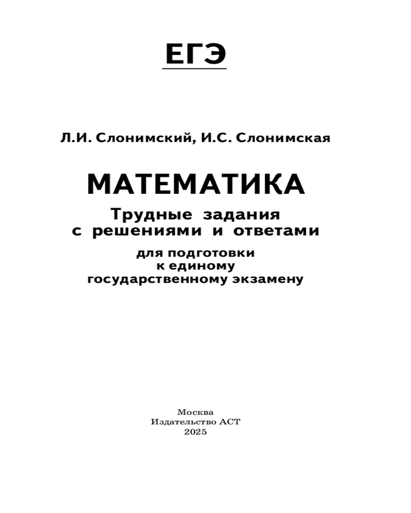 ЕГЭ. Математика. Трудные задания с решениями и ответами для подготовки к единому государственному экзаменуИрина Семеновна Слонимская, Лев Иосифович Слонимский +100