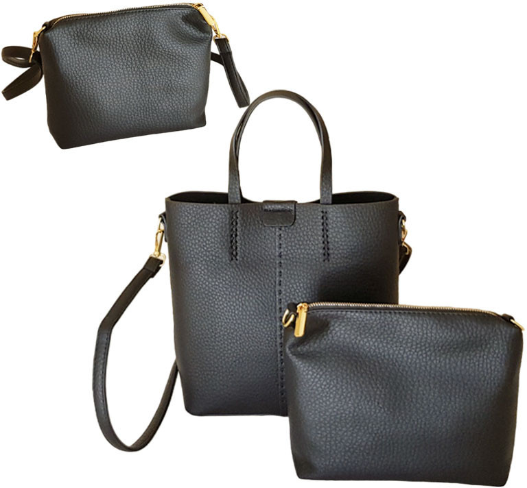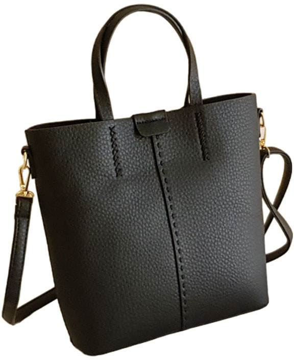 Данная черная сумка является комплектом, состоящим из двух единиц: непосредственно самой сумки и сумки-косметички, который можно разместить как внутри данной модели, так и носить отдельно. Комплект выполнен из мягкой экокожи, приятной на ощупь. Обратите внимание на такой важный момент, как легкость сумки, что является приятным дополнением к стильному дизайну данной модели. Комплект выполнен с высоким качеством: ровные строчки, аккуратная фурнитура, декоративные элементы. Обе сумки имеют металлические шлёвки для крепления ремня. Ремень легко регулируется по длине. Базовая сумка комплекта, закрывается при помощи магнита. Дизайн сумки искусно дополнен декоративными строчками, как у основания ручек (в виде плетения), так и по центру в виде вертикального шва. Внутренняя клатч-косметичка легко превращается в универсальную сумку кросс-боди, стоит только к ней закрепить отстегивающийся ремешок. Такую сумочку можно носить как на плече, так и через плечо.