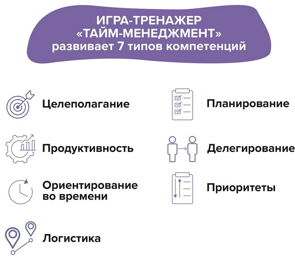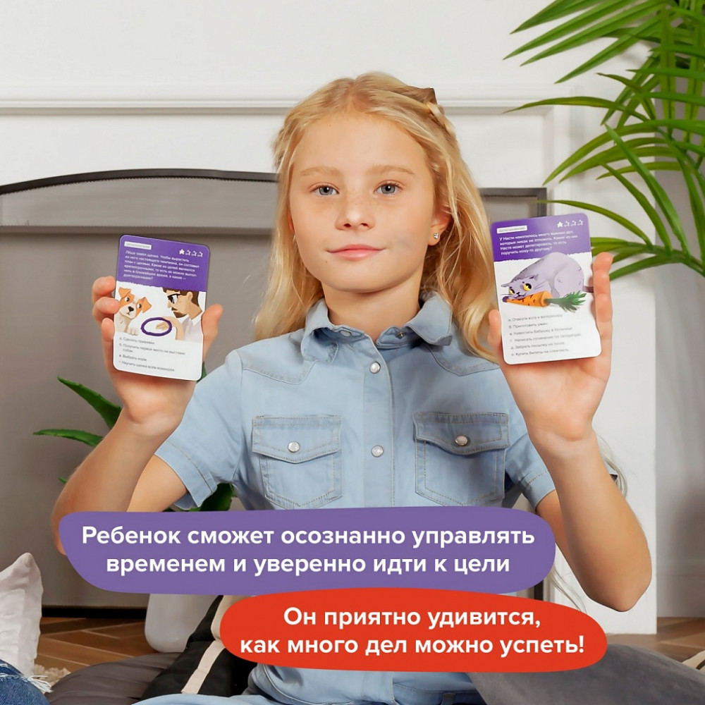 Игра Brainy Trainy «Тайм-менеджмент» помогает ребёнку осознанно управлять своим временем, эффективно планировать дела, выделять приоритеты и уверенно идти к достижению целей. Чтобы ребёнок рос самостоятельным и всё успевал, ему необходимы навыки тайм-менеджмента. Они позволяют легко строить реальные планы на день, неделю или месяц, ставить выполнимые цели и ловко распределять время. Ребёнок научится управлять временем и своими задачами. Он приятно удивится, как много всего можно успеть!