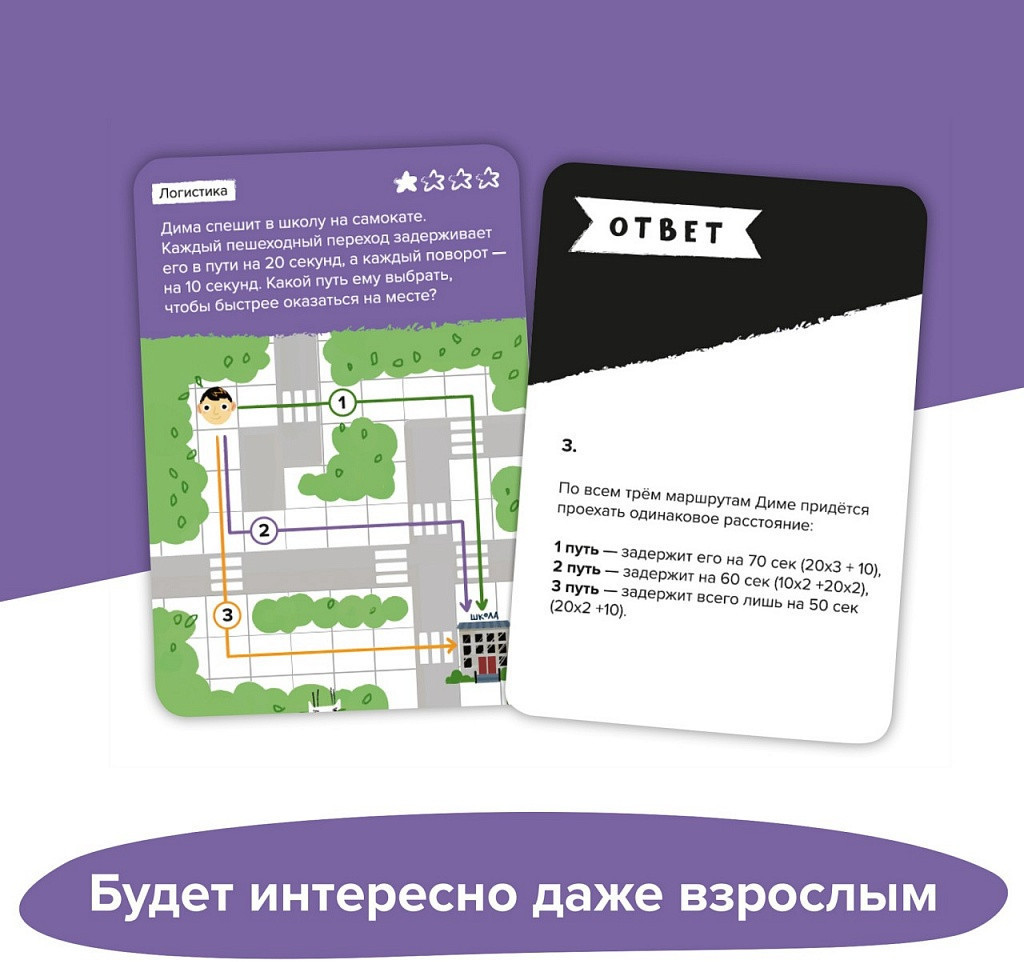 В этом сборнике задания рассчитаны на детей 10-12 лет, но при этом решать их будет интересно и полезно даже взрослым. Присоединяйтесь к занятиям по карточкам, устраивайте интеллектуальные турниры и учитесь управлять временем всей семьёй!