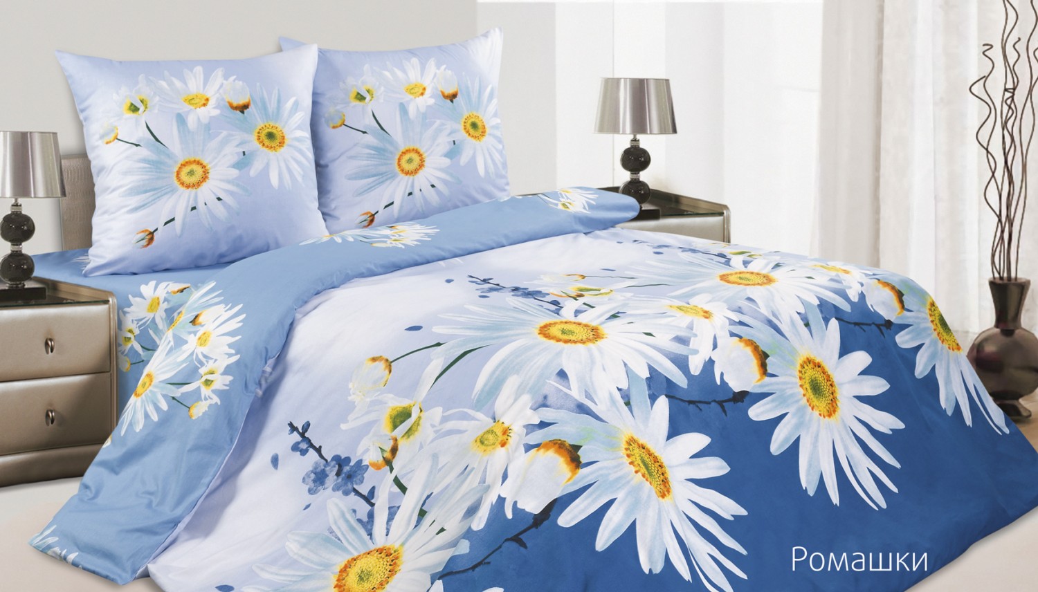 Комплект постельного белья «Ромашки» изготовлен из высококачественного поплина, который позволяет коже дышать в течение всей ночи, обладает расслабляющим эффектом. Насладившись полноценным сном, Вы проснетесь наутро с новым зарядом энергии и хорошего настроения.