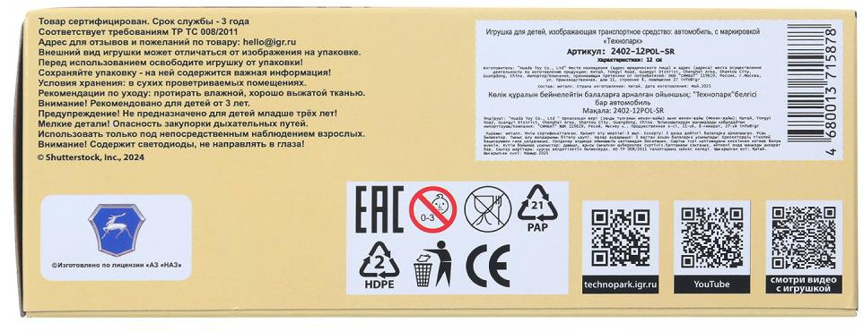 💳 Оплатить за товар можно при получении 🇰🇿 Есть бесплатная доставка по Казахстану от 1 дня 🎁 Копите бонусы с каждой покупки Серия: Полиция Коллекционная металлическая модель «ГАЗ-2402 Волга. Полиция» ТМ «Технопарк» — прекрасный подарок для юного автолюбителя. Металлическая модель, выполненная с учётом всех особенностей прототипа, обязательно понравится вашему ребёнку. Благодаря открывающимся дверям и багажнику, которые делают машинку максимально похожей на настоящую, всегда можно заглянуть к ней внутрь, чтобы убедиться — каждая деталь отлично проработана. Реалистичный дизайн данной модели позволит с головой погрузиться в игру, придумывая новые интересные сюжеты. Кроме того, эта игрушка познакомит детей с видами спецтранспорта. |