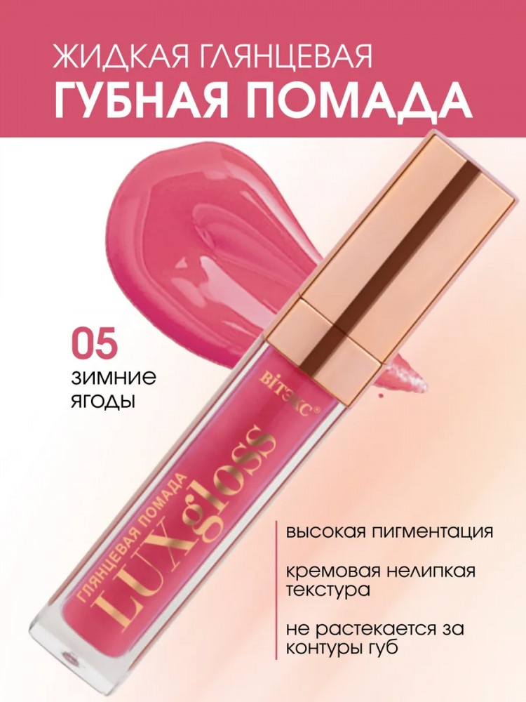 Вiтэкс Помада для губ жидкая глянцевая «LuxGloss», тон 05 Зимние ягоды