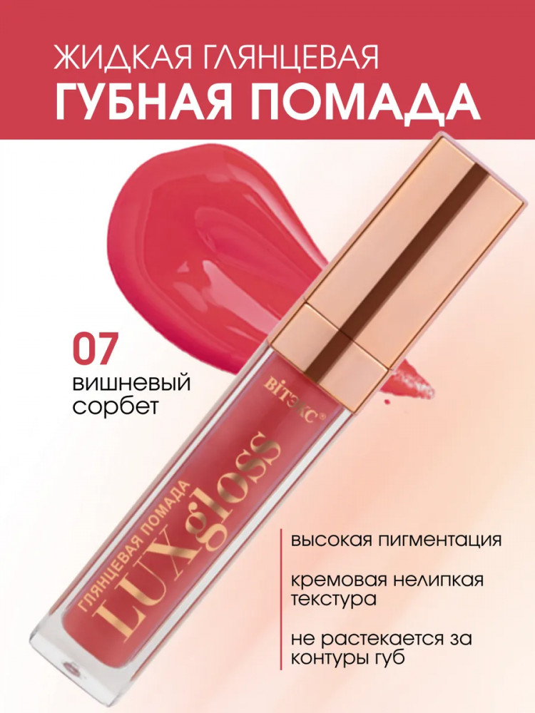 Вiтэкс Помада для губ жидкая глянцевая «LuxGloss», тон 07 Вишнёвый сорбет