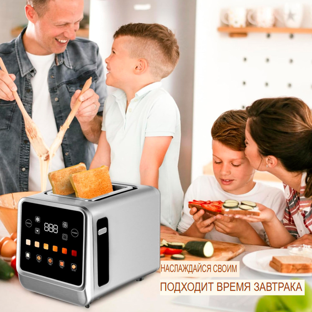 ЖК-дисплей и сенсорное управление: тостер с широкими слотами оснащен красочным ЖК-дисплеем, поэтому вы можете легко увидеть тип хлеба, настройку оттенка и оставшееся время. На красочном экране отображается оставшееся время выпечки, так что вы можете немного поспать!