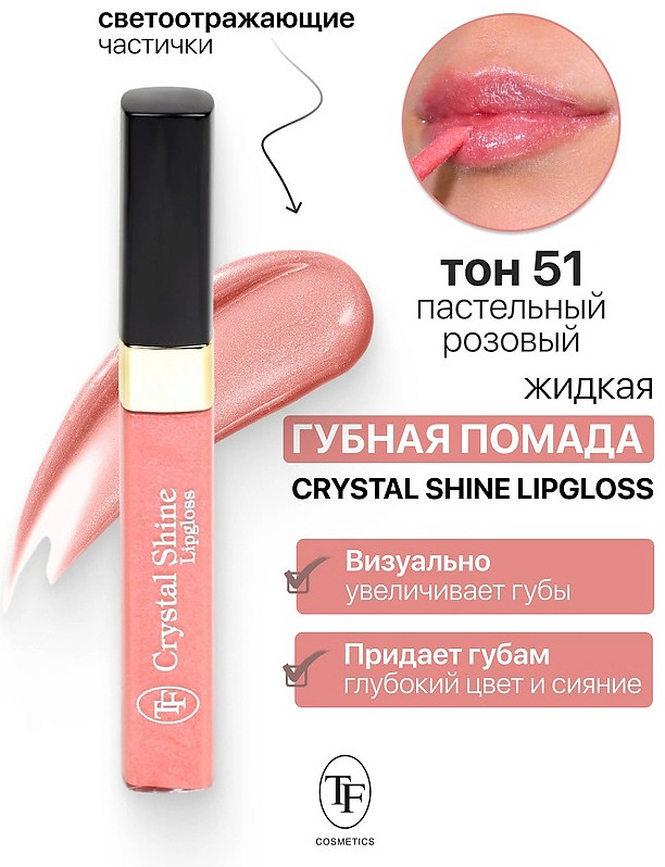 Triumph Помада-блеск для губ жидкая «Crystal Shine Lipgloss», тон 51 Пастельный розовый