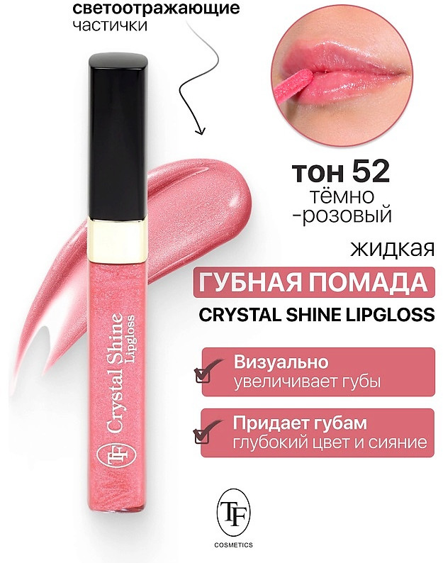 Triumph Помада-блеск для губ жидкая «Crystal Shine Lipgloss», тон 52 Темно-розовый