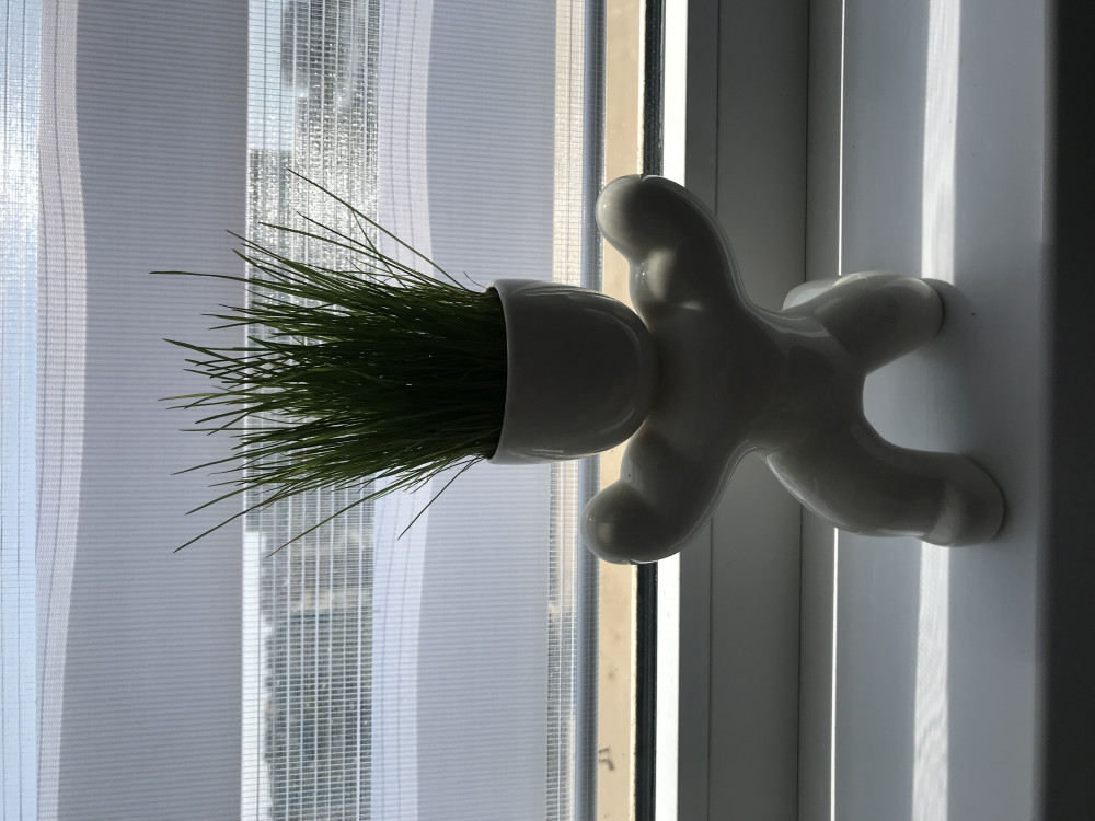 Трава выросла густая, несмотря на то, что сажала как попало. И семена при поливе всплывают. Сначала росла кустами. После того, как выросла - поливать нужно постоянно, иначе трава сразу вянет