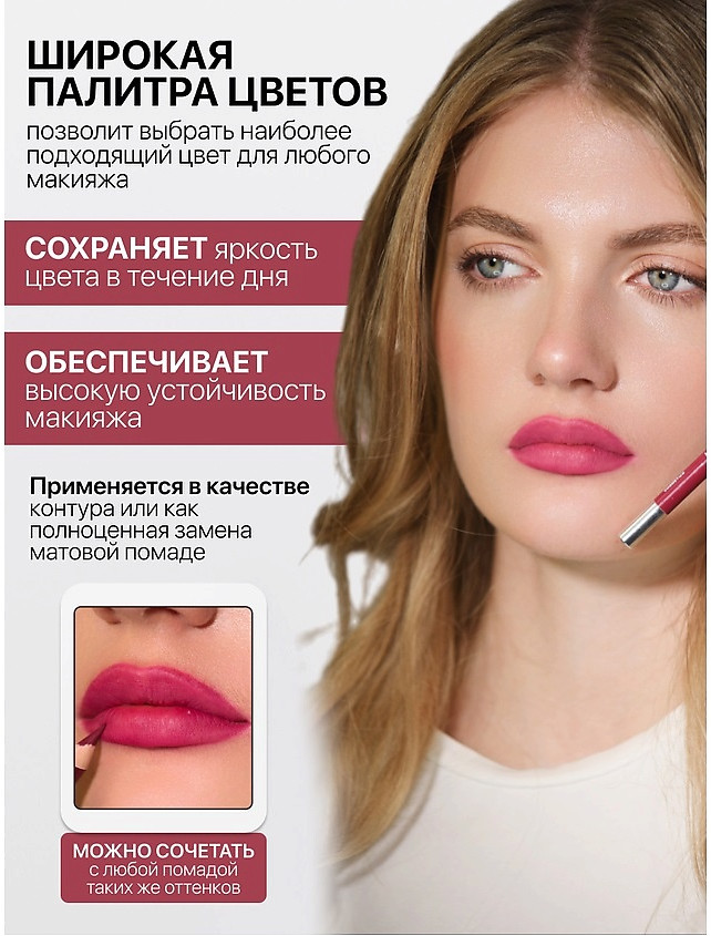 Хороший карандаш. Практически идеально подошёл к помаде Вивьен Сабо «Merci», тон 05. Спасибо