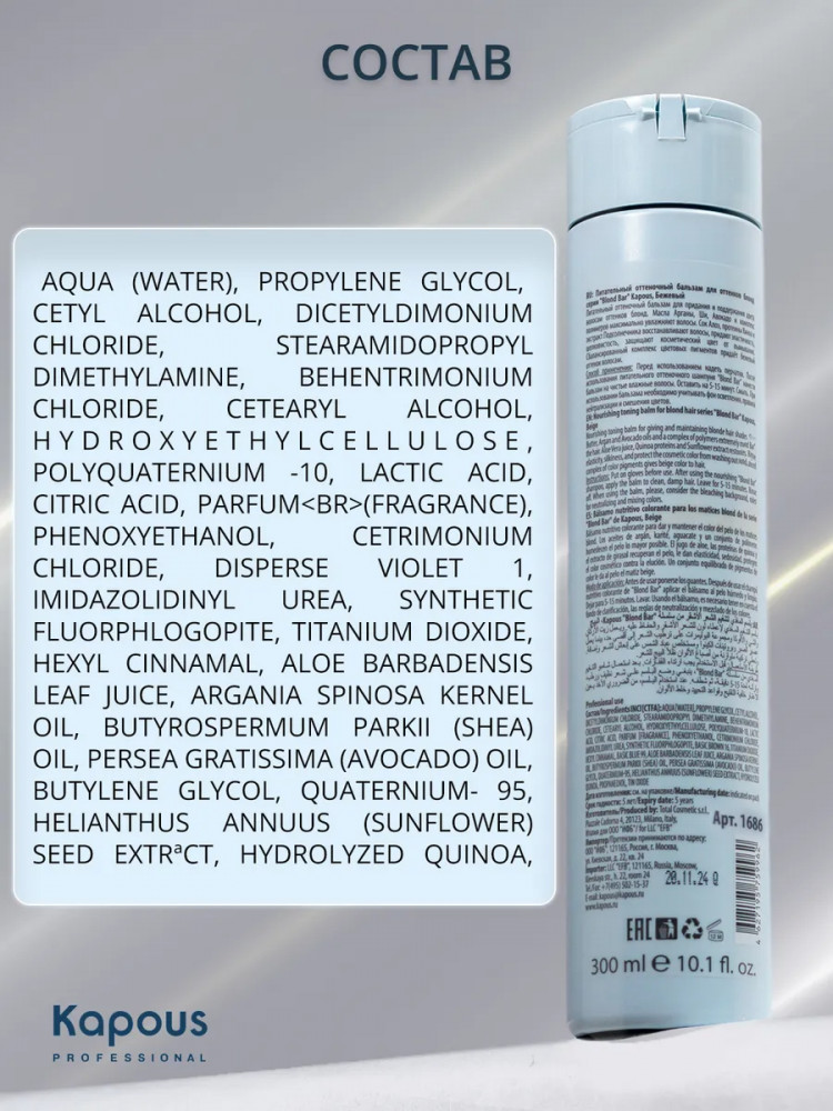 Kapous Professional Бальзам оттеночный питательный для оттенков блонд, оттенок Перламутровый