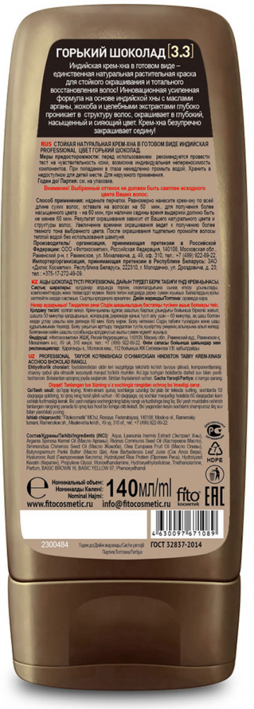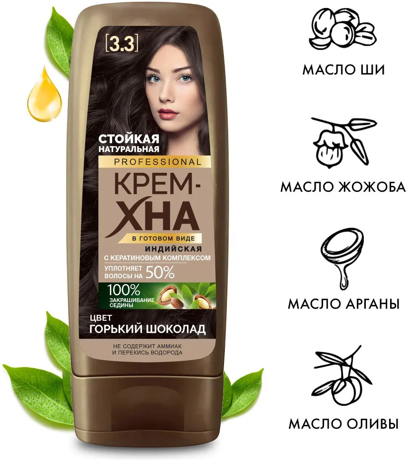 Фитокосметик Крем-хна для волос индийская, оттенок 3.3 Горький шоколад
