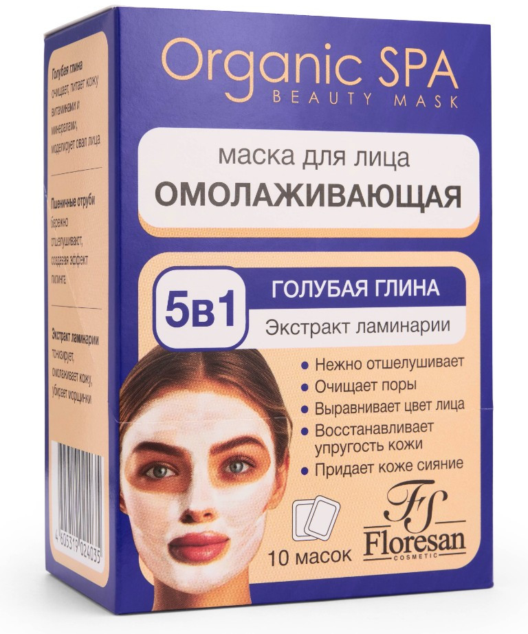 Floresan Набор масок для лица омолаживающих 5 в 1 «Голубая глина и экстракт ламинарии»
