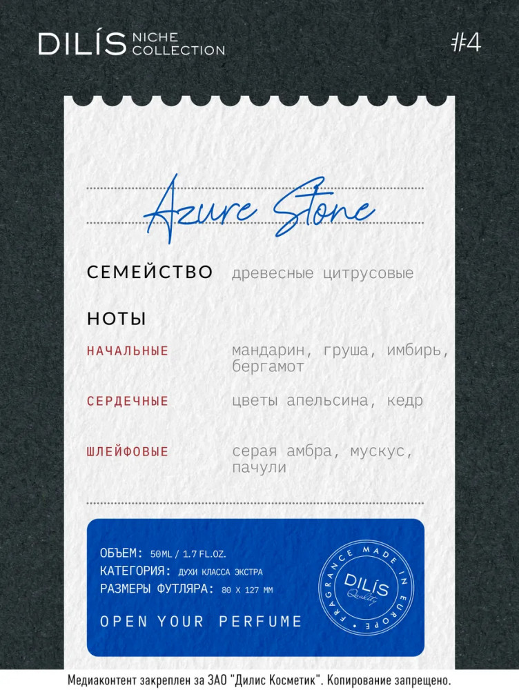 Для меня оказался не прозрачным, не морским. На моей холодной коже аптечные бинты, мох может быть, неуловимая и моментально исчезающая цитрусовая подложка. На горячей коже мужа звучит поприятнее: дым, бергамот, лёгкий табак вроде, какая-то восточная сладость проступает, возможно, пачули дает такой эффект. В общем, ждала больше холодных цитрусов, за это одну звезду сниму, хотя на каждом человеке аромат индивидуален и может звучать абсолютно иначе. Муж в целом похвалил. Стойкость часа 4+, сидит близко, не шлейфит. Отстоялся, тестировали осенью при 0...+6⁰. Оформление флакона отпад, очень стильное, нравится